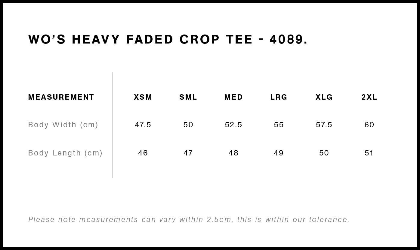 Heavy Faded Crop Tee, crafted from 100% carded cotton for durability and comfort. With a heavy 240 GSM weight and garment dyed finish, it features a cropped relaxed fit, shoulder to shoulder tape, and twin-stitched wide neck ribbing. Built to last for a timeless, relaxed look.